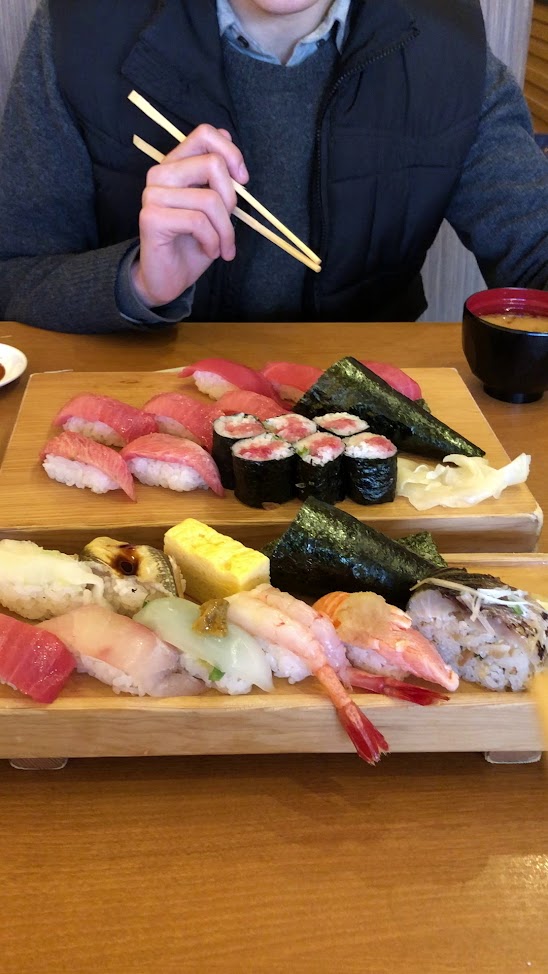 bowl of miso over myself, and the waiter got me a new bowl (all according to plan). The sushi itself was very tasty. Something notable is that the tuna nigiris are always very generous, and the tuna would drape over the rice onto the plate.